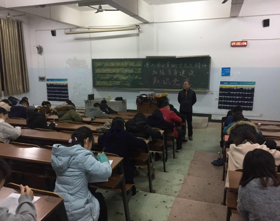 此次竞赛的主题是深入学习贯彻十九大精神,加强自身建设。考查内容有党的十九大传达的精神、党章、党规、党的基础知识以及师生党员结合自身实际谈如何在教风建设、学风建设中发挥先锋模范带头作用。在竞赛过程中,无论是身处化工楼317的教师党员还是身处一教410的员工党员,均积极认真的对待。他们在考场上的奋笔无不印刻出对党和国家的敬重与热爱。