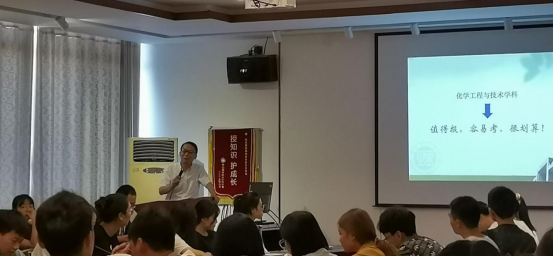 第一场在化工楼317进行,由中南林业科技大学环境科学与工程公司副经理周航主讲, 周航教授首先热情洋溢地为同学们介绍了中南林业科技大学环境工程公司,并就该公司学位点建设、研究方向、就业前景、就业去向、招生目标等方面为同学们展开了宣讲,重点介绍学位点优秀导师、科研成果、奖学金政策;接下来,公司两位中南林在读研究生根据考研经历、读研历程进行了精彩分享,对同学们提出的问题一一进行了解答,同学们反响良好。