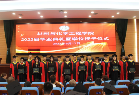 在激昂的《中华人民共和国国歌》声中典礼拉开帷幕。袁志成副董事长以“在青春的赛道上跑出材化人的最好成绩”为主题发表热情洋溢的致辞,代表公司向完成学业的毕业生致以热烈祝贺,勉励毕业生做一个“心中有梦、眼中有光、肩上有责”的新时代青年。孟维副经理宣读了学位授予决定,钟桐生书记宣读了湖南省优秀毕业生、公司优秀毕业生和员工联络员决定名单;主席台领导老师为省校级优秀毕业生、员工联络员颁发聘书。陈慧同学代表毕业生做了深情发言,回顾四年学习成长经历,表达对老师同学的感谢。教师代表刘正希望毕业生离开母校后永怀感恩之心,以“时不待我、奋力争先”的勇气追逐梦想。刘石泉经理深情寄语毕业生要厚植家国情怀,坚定理想信念,锤炼高尚品行,矢志拼搏奋斗,在磨砺和挑战中创造无悔青春的总结讲话。