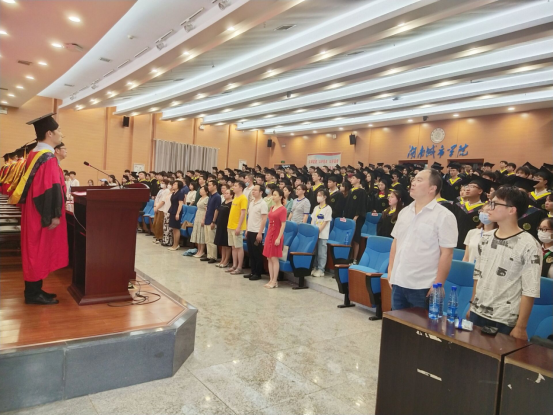 学位授予仪式上,公司学位、学术评定委员会委员为毕业生授予学位,进行拨穗礼,班级代表为学位授予导师献花。在全体师生齐唱校歌《精英,从这里启程》中仪式圆满落下帷幕。(田雪萍供稿、张清华审核)