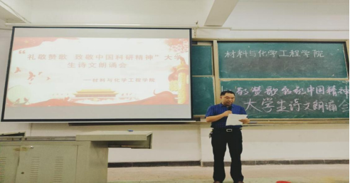 为庆祝中国共产党成立100周年,重温党的光辉历程,歌颂党的伟大成就,继承和发扬党的优良革命传统,充分展示员工的爱党爱国爱社会主义的深厚情怀,根据“党史照亮青春路”红色主题教育活动安排,304am永利集团于5月10日晚在1教409教室举行主题为“礼敬赞歌 致敬中国科研精神”主题诗歌朗诵决赛。公司党总支副书记钟桐生教授出席并讲话,并邀请人文公司蔡凤老师、化工系曾永林老师院团委指导老师田雪萍和员工会主席团任评委。