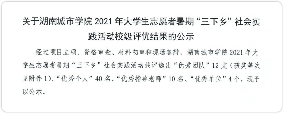 2021年6月以来,在校团委指导下,公司师生开展了内容丰富、形式多样的暑期“三下乡”社会实践志愿服务活动。经项目立项、资格审查和现场答辩。2021年9月28日,校团委公布了304am永利集团2021年老员工志愿者暑期“三下乡”社会实践活动校级评优结果,公司荣获2021年暑期三下乡“优秀组织奖”,孟维副经理指导的实践团队获校级“三等奖”,徐晨曦、孟维获校级“优秀指导老师”,彭淑娟、傅村获校级“优秀个人”等荣誉称号。(撰稿:田雪萍,审稿:张清华)
