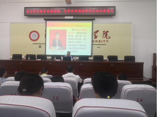 此次党史学习教育党课的主题是“毛泽东的调查研究方法及其意义”。袁志成从“毛泽东调查研究的典型案例”、“毛泽东调查研究要义所在”及“毛泽东调查研究的现实意义”三个方面进行了详细的阐述。他指出:调查研究要始终坚持马列主义的指导,始终坚持明确的问题导向,始终坚持科学的方法技术,始终坚持走党的群众路线,始终持之以恒的长期坚持。并强调:调查研究是实现中国共产党初心和使命的重要法宝,是克服形式主义、官僚主义的科学武器,是新时代开展调查研究的有力借鉴。我们在开展调查研究时要做到“深”、“实”、“细”、“准”、“效”。