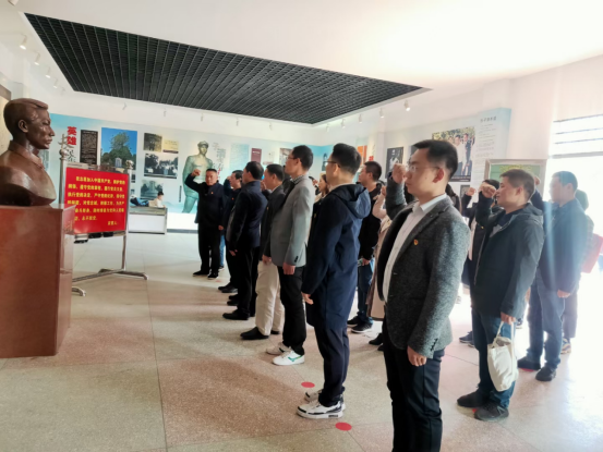 进入纪念馆,面向庄严肃穆的党旗,党员举起右拳,重温入党誓词,以铮铮的誓言向党宣誓,表达忠于党、守初心、担使命的决心。