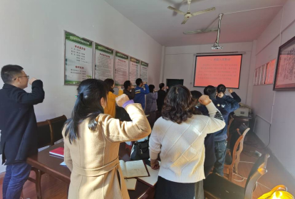 接下来,支部党员张清华同志过政治生日,向组织汇报了思想,并带领全体同志重温了入党誓词。